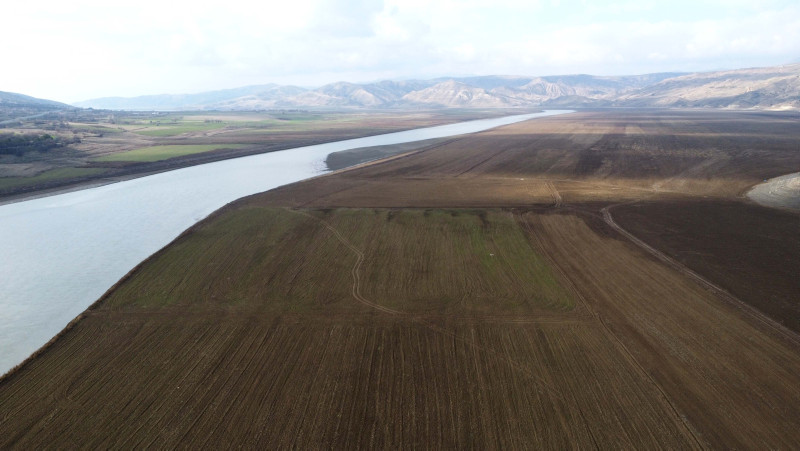 Ömerli Barajı 35.43, Darlık Barajı 28.39, Elmalı Barajı 29.8, Terkos Barajı 37.73, Alibey Barajı 17.61, Büyükçekmece 34.48, Sazlıdere Barajı'nın doluluk oranı ise 37.1 olarak görülüyor. Doluluk oranı 35.43 seviyesinde olan Ömerli Barajı da havadan görüntülendi.