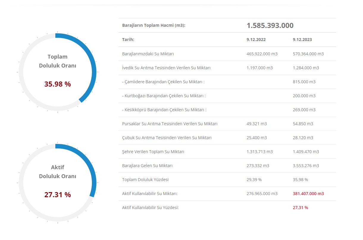 İSTANBUL BARAJLARI DOLULUK ORANLARI