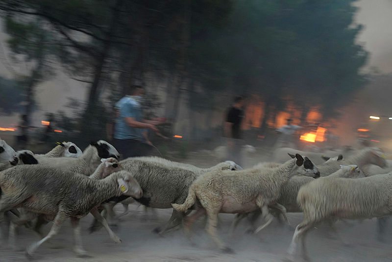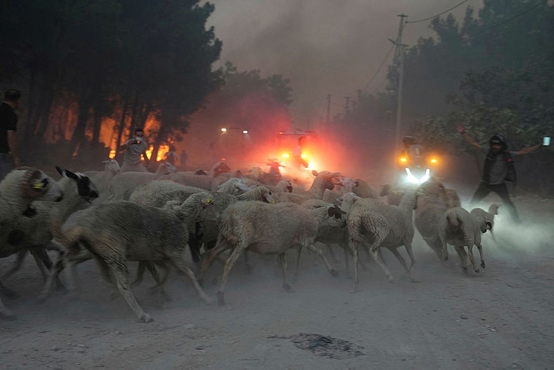 Yangın nedeniyle bölgede bulunan arı kovanları ile küçükbaş hayvan ağılları tahliye edildi.