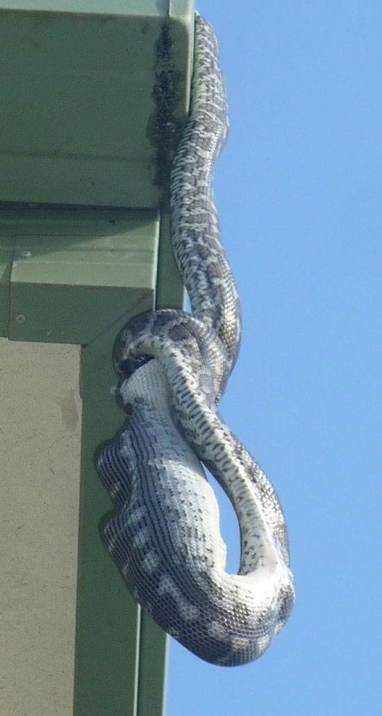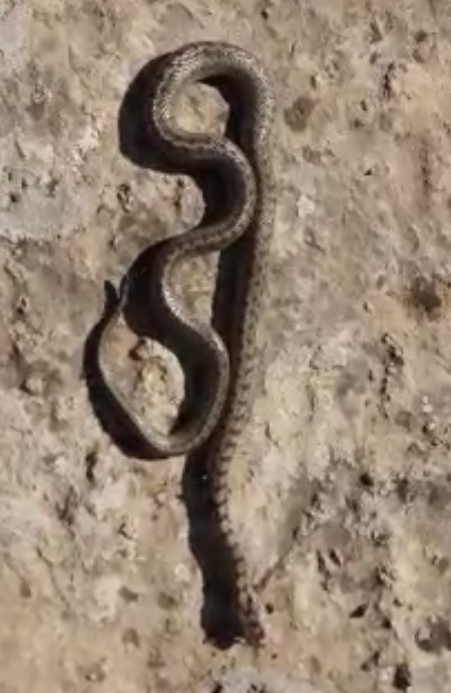 Kentte kış ayında hava sıcaklığını yükselmesiyle Sağırsu köyünde bir vatandaş, yuvasından çıkan 1 metre uzunluğundaki yılanı fotoğrafladı.