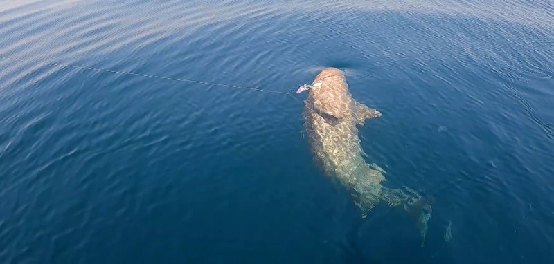 70 santimetre uzunluğunda ve 5 kilogram ağırlığındaki balığın kısa sürede gözden kaybolduğu görüldü.