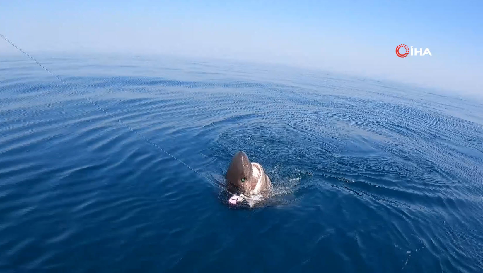 Saros Körfezi'ne kıyısı bulunan Keşan ilçesine bağlı İbrice Limanı'nda balık avlayan Savaş Başar İçten'in oltasına takılan balık şaşkına çevirdi.