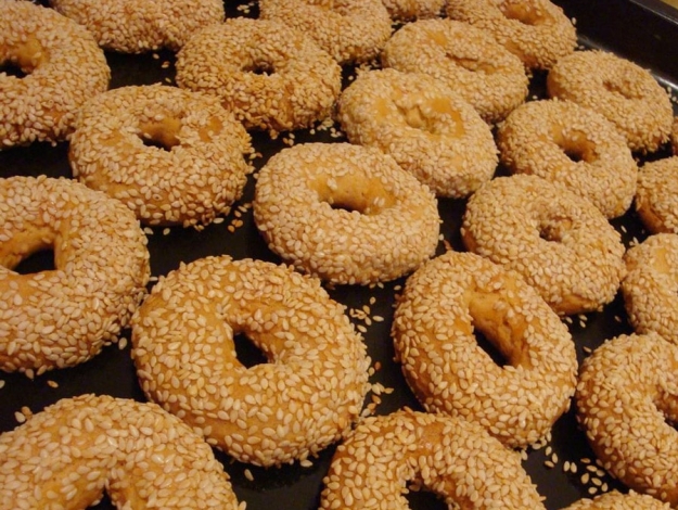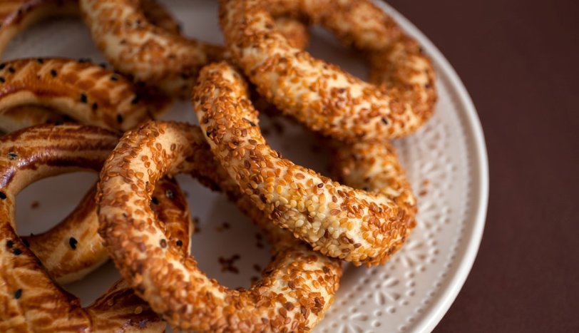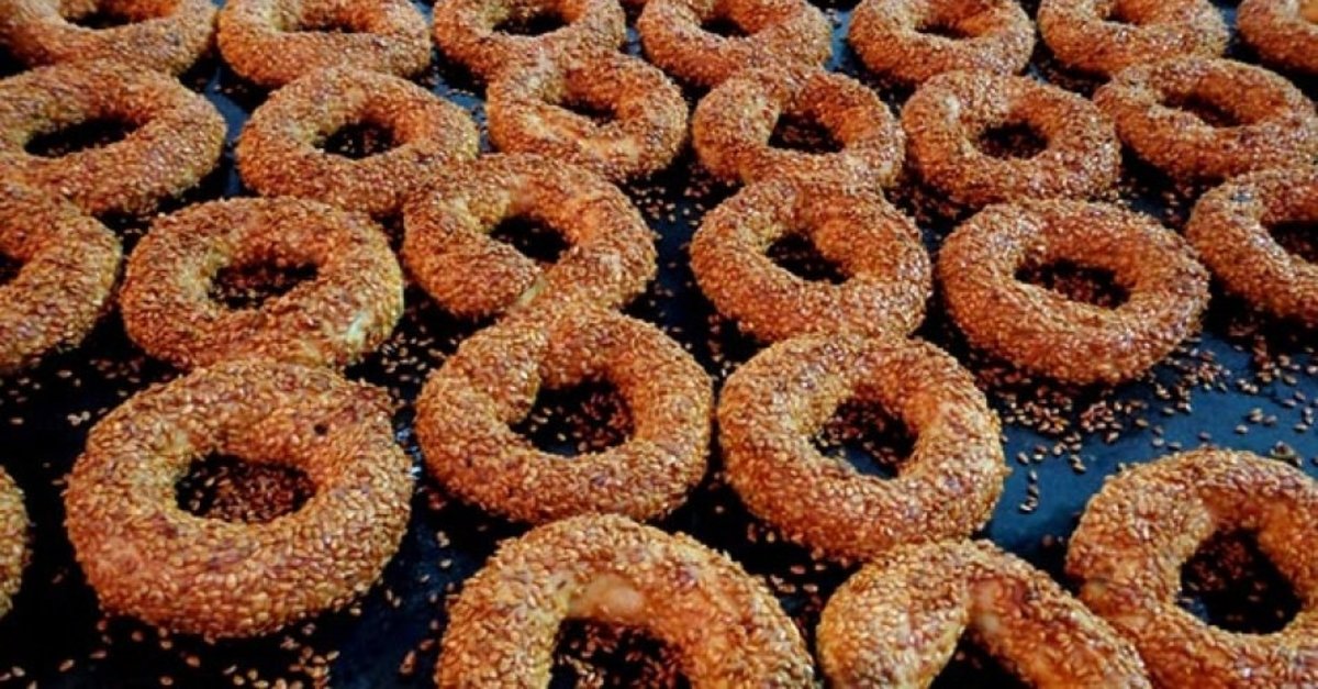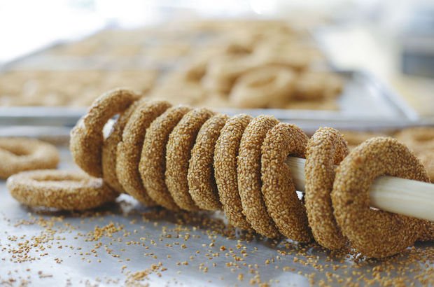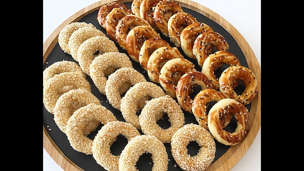Oda sıcaklığındaki margarin sıvı yağ sirke yoğurt tuz şeker yumurta sarısı karıştırılır ardından un ve kabartma tozu eklenir kulak memesi kıvamına gelindiğinde ceviz büyüklüğünde hamur alınır elle açılıp çay bardağı ile kesilir ortasını da şişe kapağı ile keseriz ardından yumurta beyazına ve susama bularız 180 derece de 20 dakika pişiririz. Afiyet olsun.