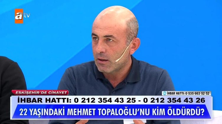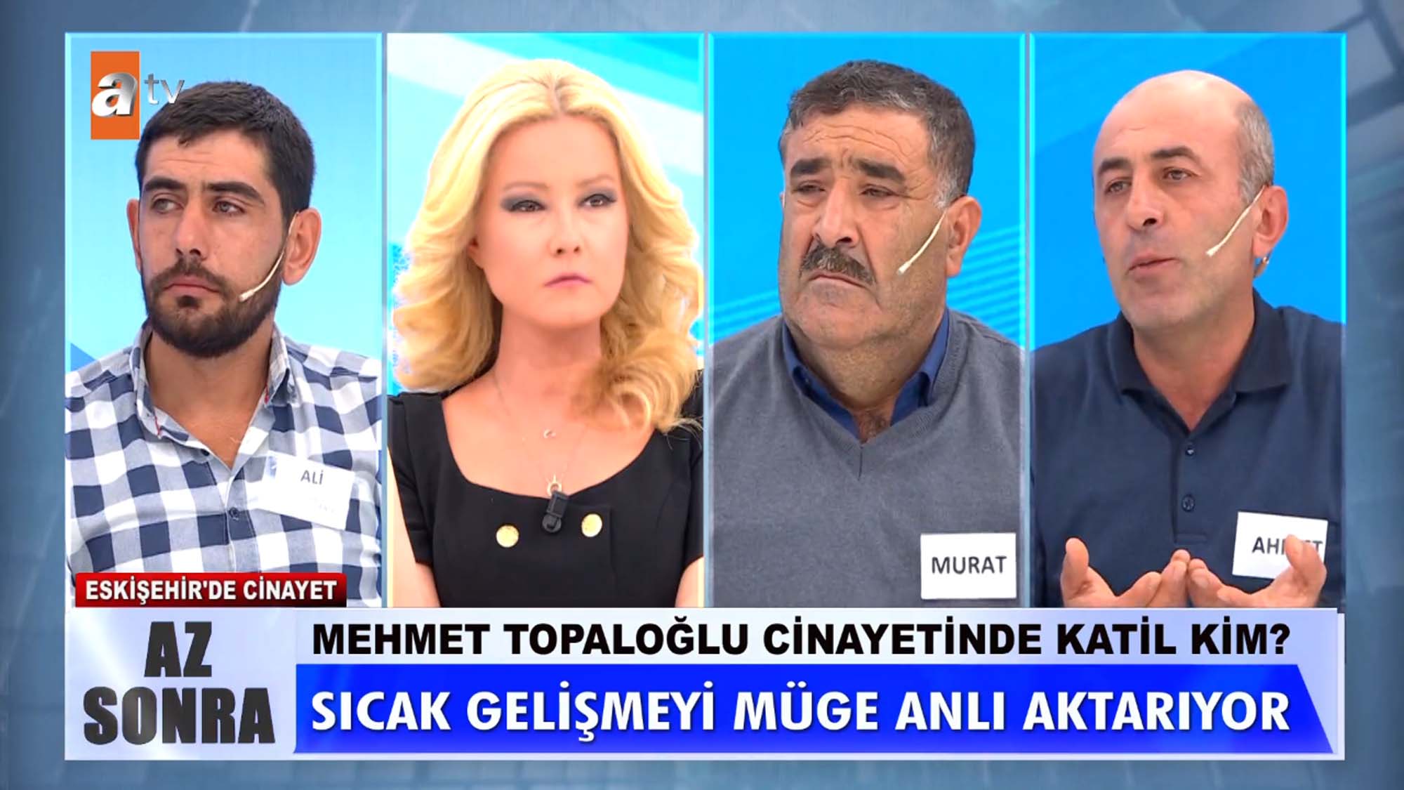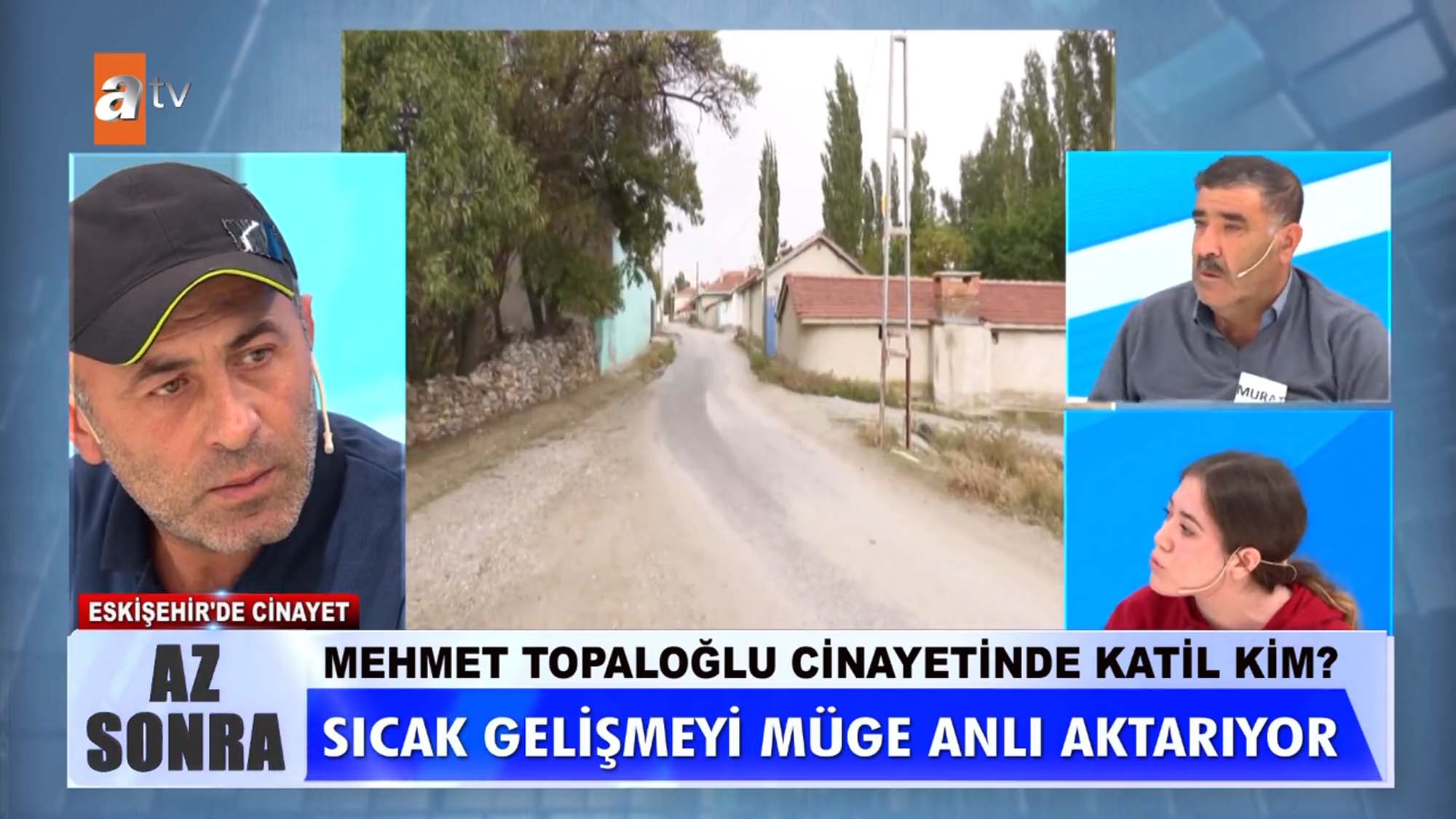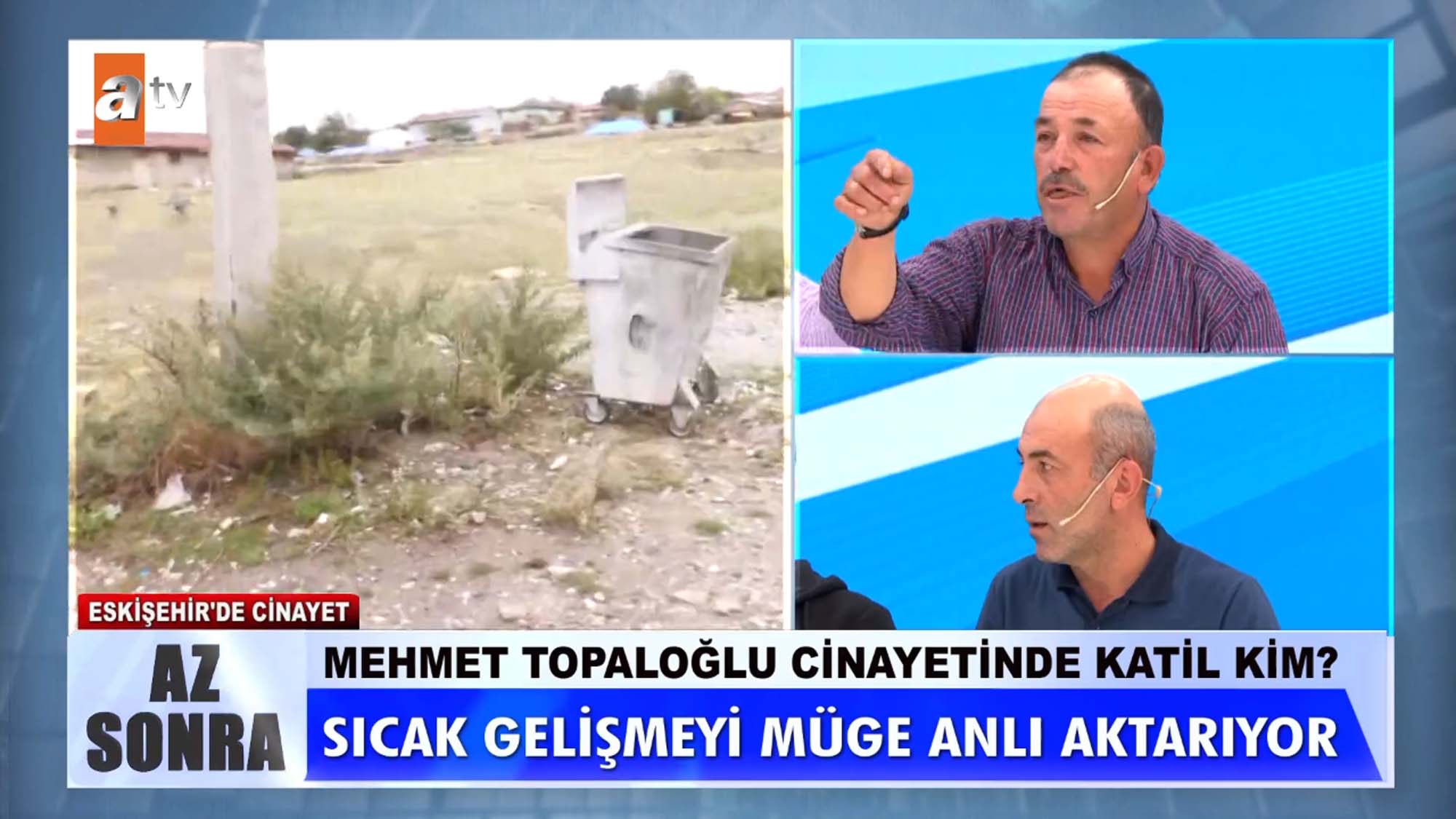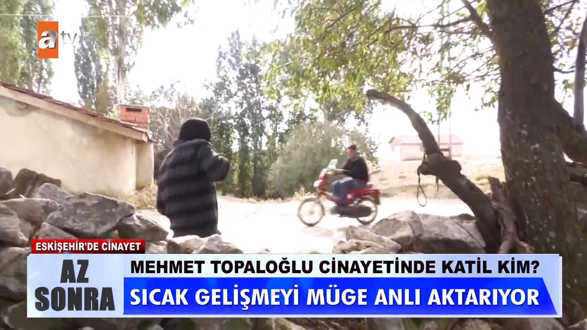 Aile, cinayetin çözülmesi için Müge Anlı ile Tatlı Sert programına başvurdu. Bunun üzerine Eskişehir'de cinayetin işlendiği köye giden Müge Anlı ve ekibi, Mehmet Topaloğlu cinayetinde ailenin şüphelendiği isimlerden Ahmet Çetin ile konuştu.