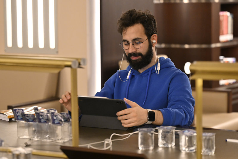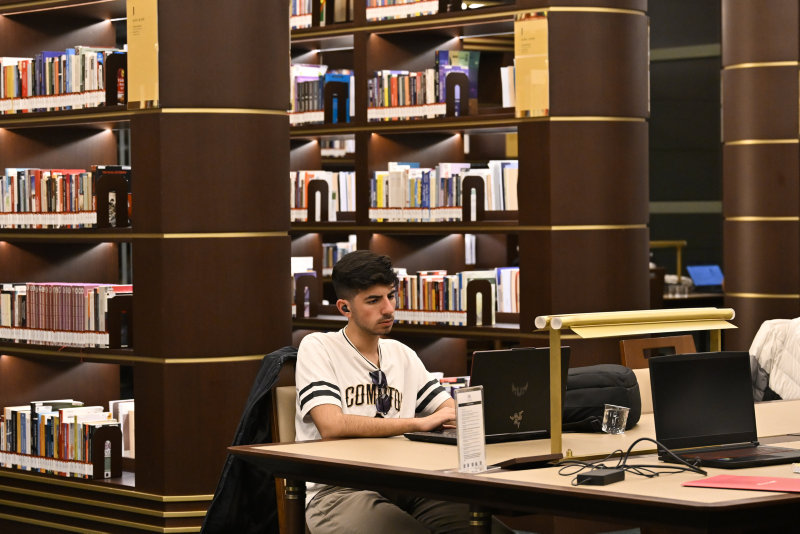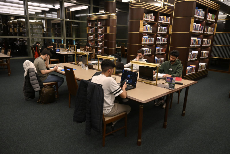 7 gün 24 saat hizmet veren kütüphaneye gelenler, kimlik kartlarıyla giriş yaparak 5 milyonun üzerinde basılı eserin yanı sıra elektronik kaynak bakımından zengin içeriklere ulaşabiliyor.