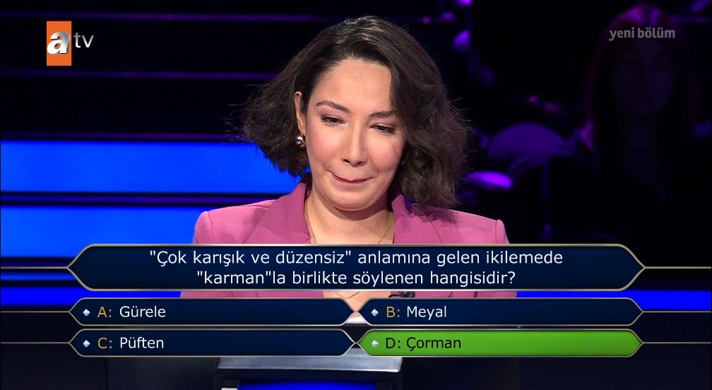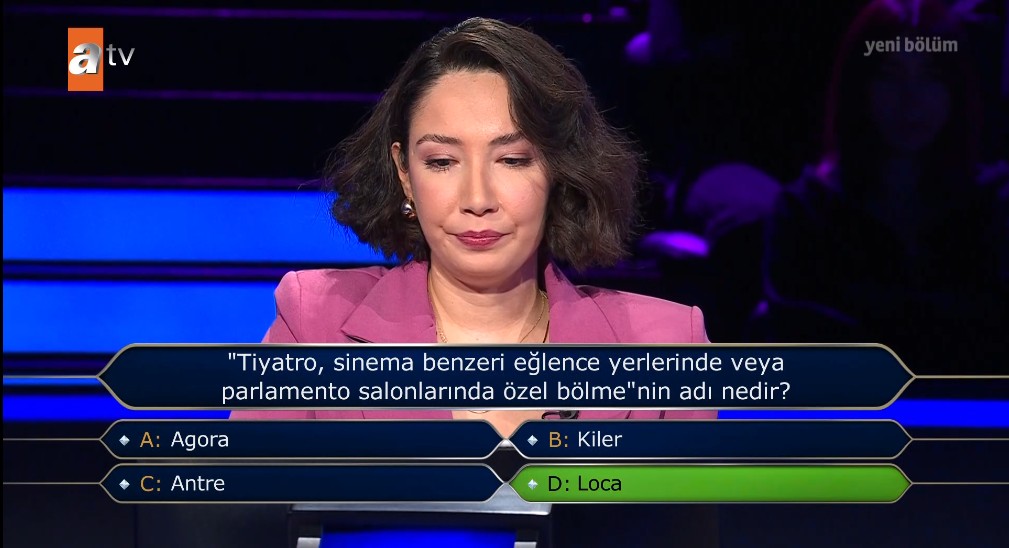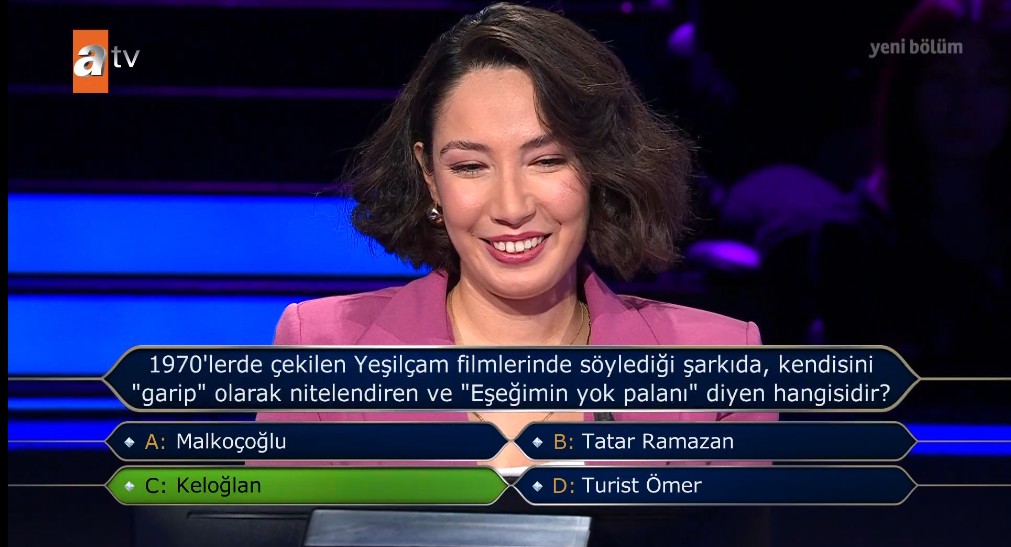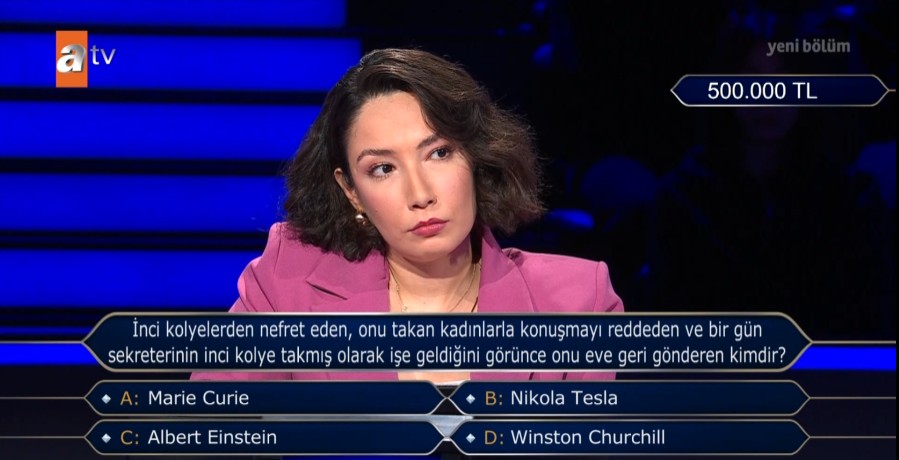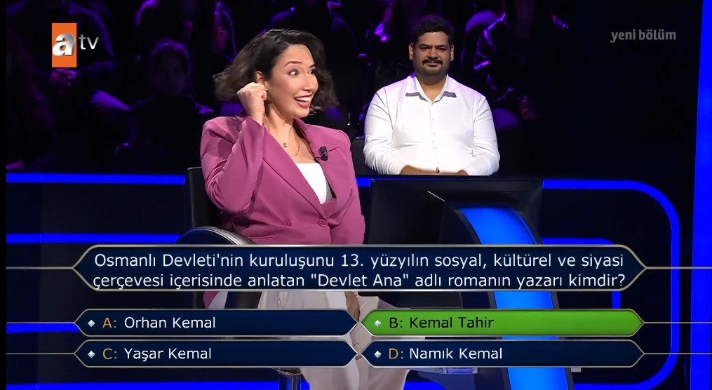 ATV'nin ilgiyle takip edilen yarışma programı Kim Milyoner Olmak İster, bu hafta da izleyicileri ekran başına kilitledi. Oktay Kaynarca'nın sunumuyla ekrana gelen yarışmada, dikkat çeken performanslar yer aldı. Yarışmaya katılan Emine Barutçu, 6 Şubat depreminde 9 gün boyunca göçük altında kalmasına ve protez kol ile ayak kullanmasına rağmen, güçlü duruşu ve gülümsemesiyle izleyicilerin takdirini topladı. Başta sunucu Oktay Kaynarca olmak üzere, stüdyodaki izleyicilerin de dikkatini çeken Barutçu, başarılı performansıyla 500 bin TL'lik soruya kadar ulaştı. İşte geceye damga vuran sorunun cevabı...