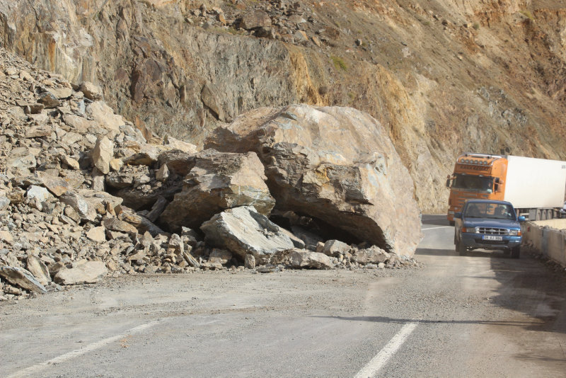 Artvin-Şavşat-Ardanuç-Ardahan güzergahındaki kara yolunun 23. kilometresinde, yamaçlardan kopan kaya kütleleri ve toprak yola sürüklendi.