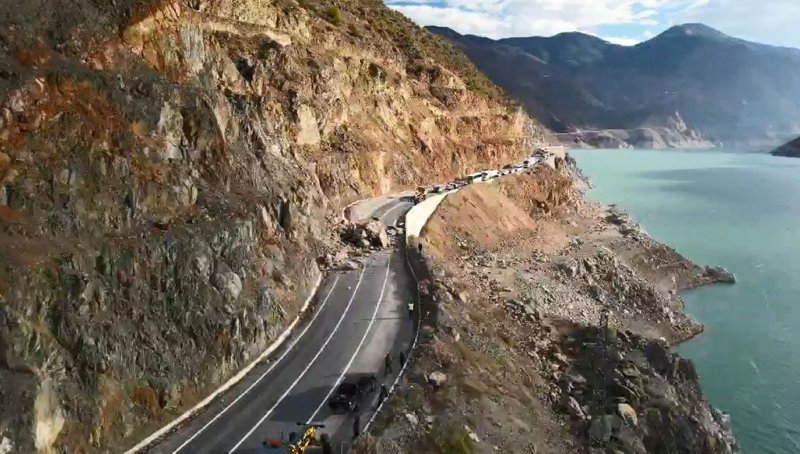 Karayolları ekiplerinin yaklaşık 1,5 saatlik çalışması sonucu yol, tek şeritten kontrollü ulaşıma açıldı.