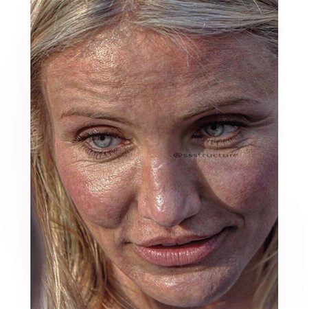 Ünlü isimleri hep spot ışıkları altında ve uzaktan görüyoruz. Makyajlarını, kıyafetlerini değerlendiriyoruz. Peki onları ne kadar yakından tanıyoruz? Instagram'da ssstructure isimli bir kullanıcı ünlülerin yakınlaştırılarak çekilen fotoğraflarını yayınlıyor. Ve yayınladığı fotoğraflardaki detaylar, hepimizin aklındaki ünlü profilini alaşağı ediyor. Ünlülerin makyajla bile kapatılamayan kusurları bu fotoğraflarda daha da ortaya çıkıyor. Gelin birlikte ünlü isimlere biraz daha yakından bakalım.
