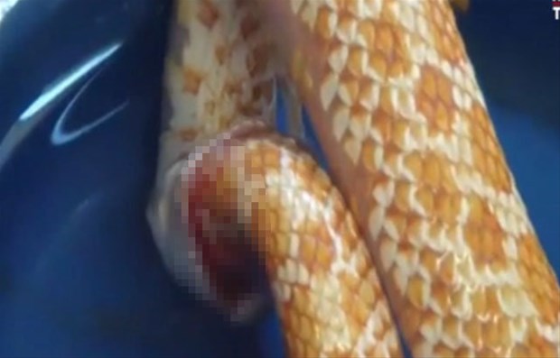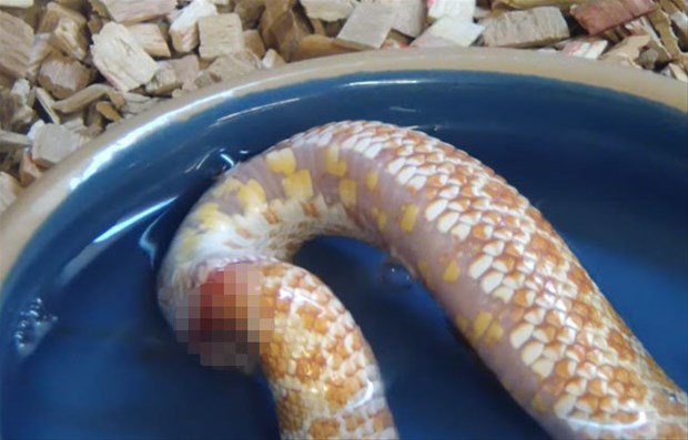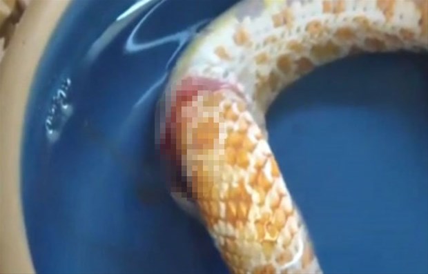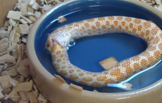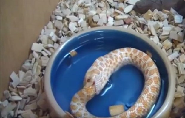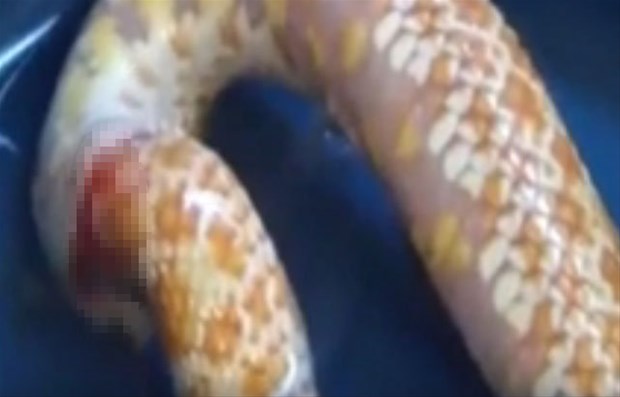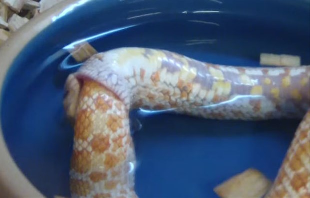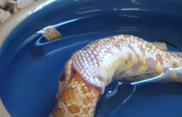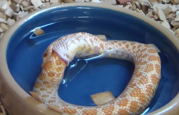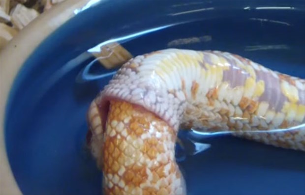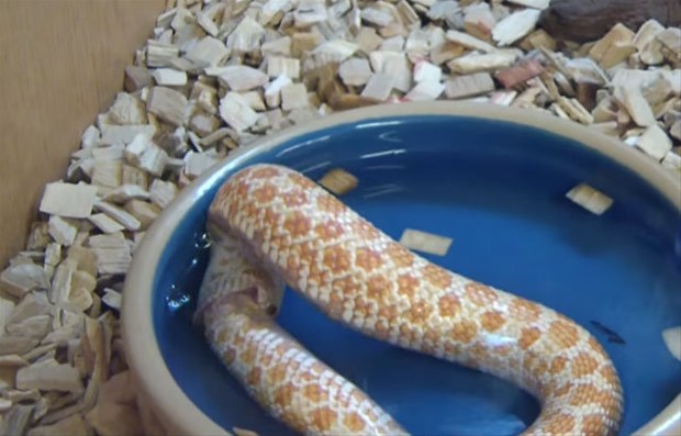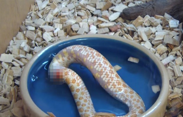 Karnı acıkan Reggie adındaki bir yılan kendi kuyruğunu başka bir yılan sanıp ısırdı.