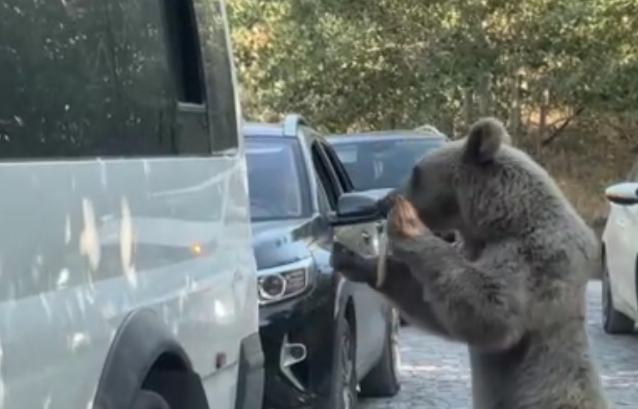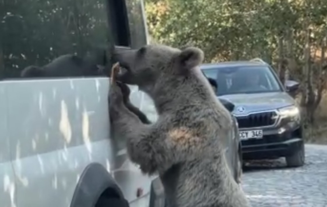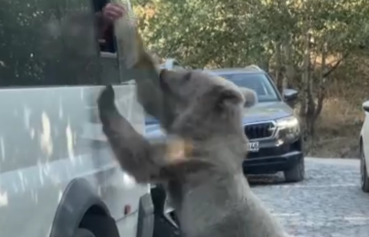Bitlis'in Ahlat, Güroymak ve Tatvan ilçelerinin sınırında yer alan Nemrut Kalderası'na gezmeye giden bir kişi, göl çevresinde yiyecek arayan boz ayılarla karşılaştı. Aracının camından ayıya ekmek vermek isteyen vatandaş, bir anda saldırıya uğradı. Saldırıyı kıl payı atlatan kişinin yaşadığı anlar ise kameraya yansıdı.