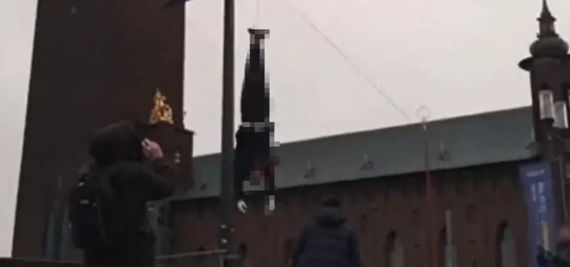 Dünyanın gündeminde İsveç'in başkenti Stockholm'de Başkan Recep Tayyip Erdoğan'ı hedef alan alçak eylem var. Stockholm'da bulunan tarihi belediye binasının önünde, Başkan Erdoğan'a benzetilen bir maket bir direğe ayaklarından asıldı. Çirkin olayın gerçekleştiği anları kayıt altına alan PKK destekçileri, eylemi terör örgütü bağlantılı sosyal medya hesaplarından da paylaştı.
