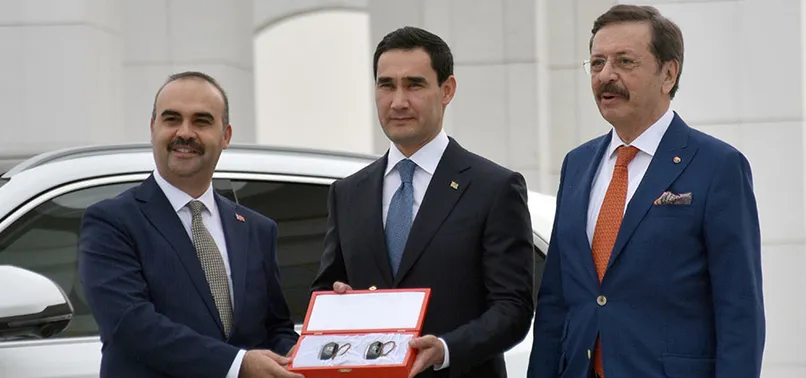 Bakan Mehmet Fatih Kacır'dan Türkmenistan'a TOGG hediyesi! Devlet Başkanı Serdar Berdimuhamedov'a törenle teslim edildi! Direksiyona "alaca" bağlanıp tütsülendi