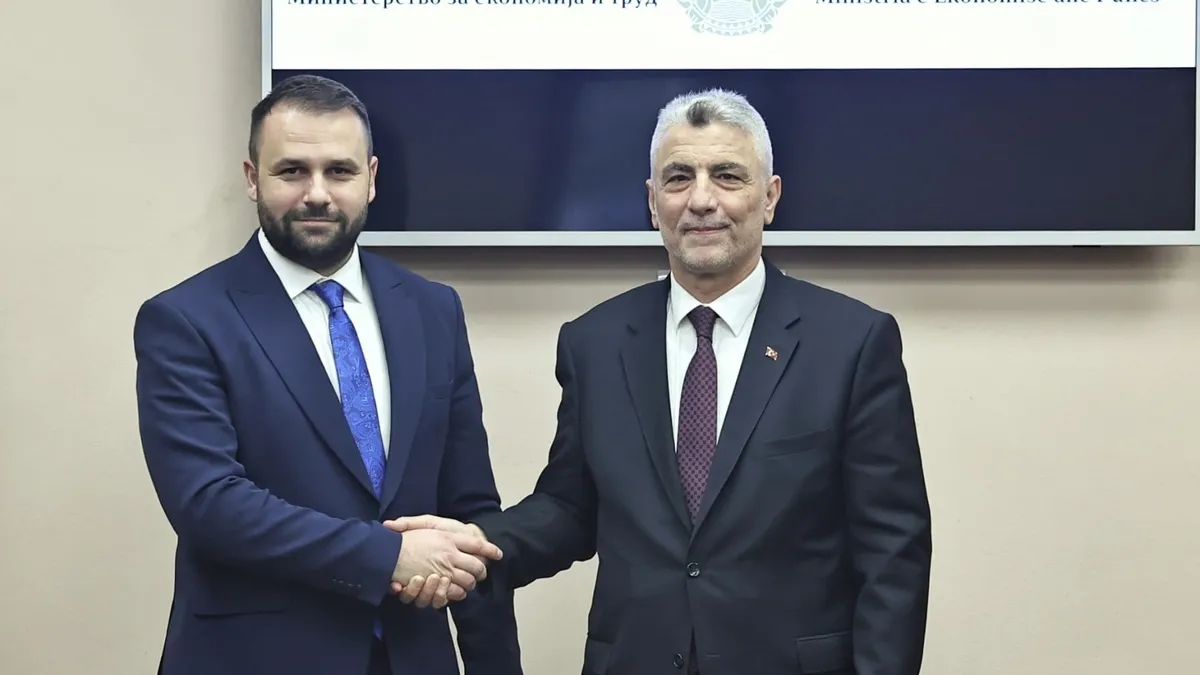 Ticaret Bakanı Ömer Bolat, Türkiye-Kuzey Makedonya İş Forumu'na katılmak üzere gittiği Kuzey Makedonya’nın başkenti Üsküp’te Kuzey Makedonya Ekonomi ve Çalışma Bakanı Besar Durmisi ile bir araya geldi.