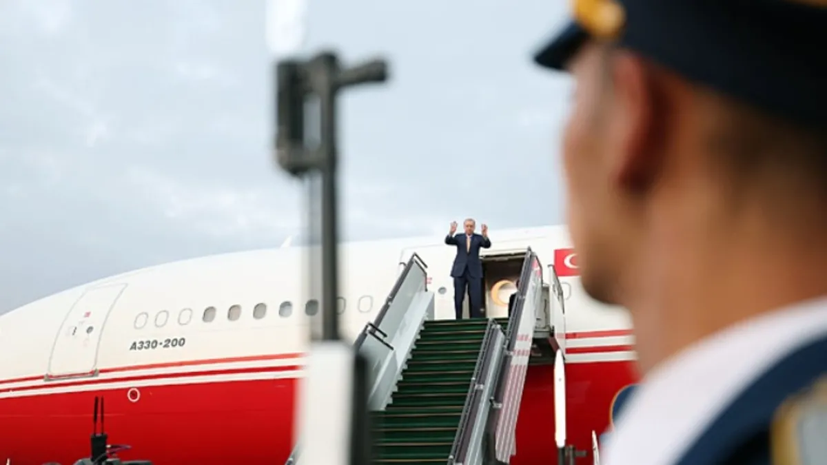 Başkan Recep Tayyip Erdoğan, Azerbaycan'daki temaslarını tamamlayarak ebele Uluslararası Havalimanı'nda "TC-TUR" uçağıyla Türkiye'ye döndü.