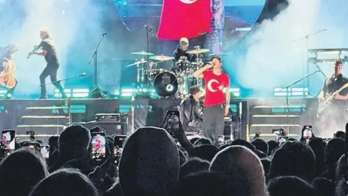 İstanbul'da konser veren OneRepublic grubunun baş vokali Ryan Tedder, şehre olan sevgisini dile getirirken, Türk bayraklı tişört giydi.