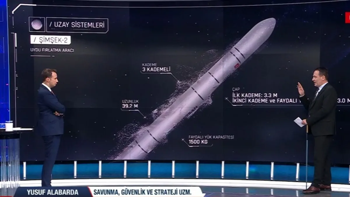 ROKETSAN tarafından geliştirilen Şimşek-2'ye dair teknik özelliklerine dikkat çeken Yusuf Alabarda; "2027 yılında ilk testi yapılacak olan Şimşek-2'nin uzunluğu 39.2 metre boyutunda. Yaklaşık 10 katlı bir bina büyüklüğünde diyebiliriz. İlk kademesi 3.3 m, ikinci ve faydalı yük kapsülü ise 3 metre olarak belirtiliyor."