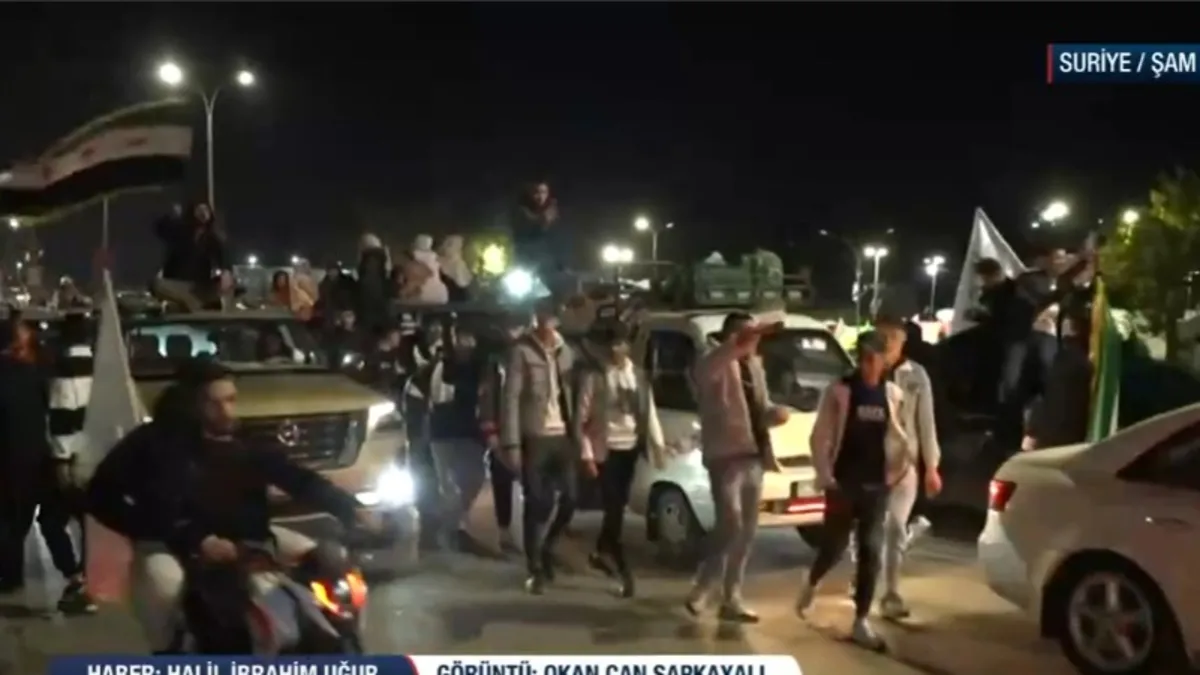 Başkent Şam'dan kutlama alanında bulunan A Haber muhabiri Halil İbrahim Uğur, hem coşkulu atmosferi görüntüledi hem de sahadaki gelişmeleri anbean aktardı.