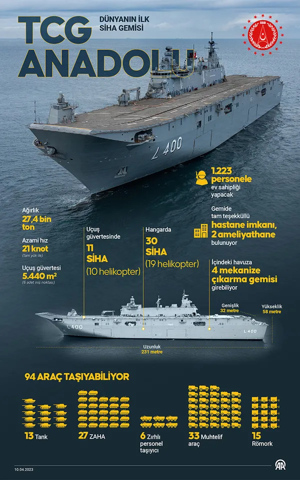 Bayraktar Kızılelma ve Bayraktar TB3 SİHA, dünyanın ilk SİHA gemisi olacak TCG Anadolu'nun 10 Nisan'da gerçekleştirilen envantere kabul töreninde uçuş güvertesinde yerini aldı.