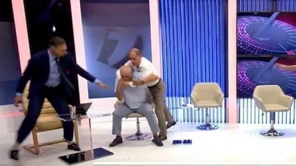 Canlı yayında giderek hararetlenen tartışma tokat ve yumruklarla son buldu. Tofilat'a masada duran su dolu bardağı fırlatan Kosovan, karşı taraftan tokat ve yumruk darbeleri alarak bilinç kaybı yaşadı.