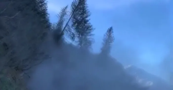 ABD'nin Alaska eyaletinde meydana gelen heyelanda toprakla beraber ağaçlar da körfeze sürüklendi. O anlar amatör kameraya yansırken, yol trafiğe kapatıldı.