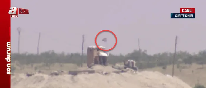 Köyün içerisine doğru geldiğimizde çok kirli organik bir iş birliği gözüküyor. Esad rejiminin kendi topraklarını ülkesinin topraklarını işgal eden aynı zamanda kendi halkına zulmeden YPG/PKK terör örgütüyle iş birliğinin aslında somut örneklerinden biri. Köyün içerisinde bulunan işgalden sonra PKK/YPG terör örgütünün nöbet kulübesi haline getirdiği yapının üzerinde Esad rejiminin bayrağının dalgalandığını net bir şekilde görebiliyoruz.