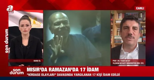 Mısır'dan tepki çeken karar! "Kirdase olayları" davasında yargılanan 17 kişi için idam kararı verildi. Ramazan ayında verilen bu karar büyük tepki çekti. Yıldırım Beyazıt Üniversitesi Öğretim Üyesi Prof. Dr. Yasin Aktay, "Mısır'da idam var ama Ramazan ayında genellikle bu kararlar uygulanmaz. 70 yaşının üzerindeki insanlar genellikle idam edilmez bu kanun değil bir teamül gereği yapılır ama bu kararda idam edilenler arasında 70 yaş üzerinde kişide var. Müslümanların müslümanlara zulmü son bulmalı. Türkiye olarak İnsan onurunun İslam dünyasında yükseltilmesi yüceltilmesi gibi bir arzumuz var. Böyle bir arzumuz varken Ramazan ayında böyle bir olayın yaşanması çok üzücü oldu." ifadelerini kullandı.