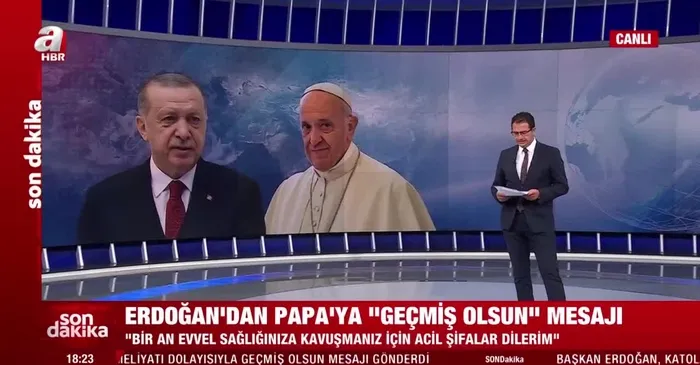 Son dakika haberi: Başkan Recep Tayyip Erdoğan, hastaneye kaldırılan ve ameliyat olan Katoliklerin ruhani lideri Papa Francis'e geçmiş olsun dileklerini iletti.