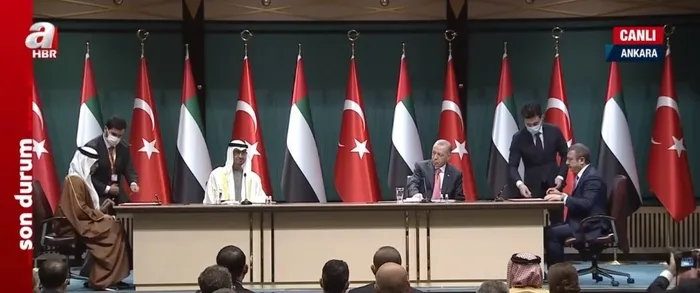 Başkan Recep Tayyip Erdoğan, Ankara'ya ziyarette bulunan Abu Dabi Veliaht Prensi Şeyh Muhammed bin Zayed Al Nahyan ile heyetlerarası görüşme-anlaşmaların imza töreni gerçekleşti.