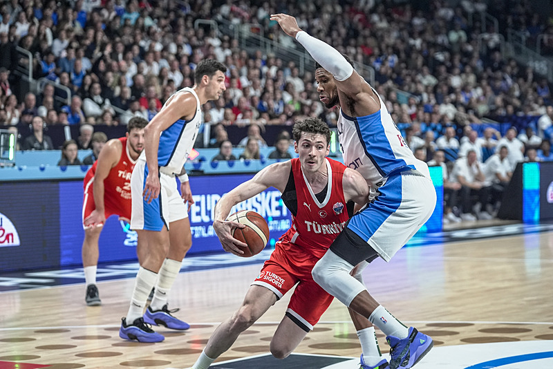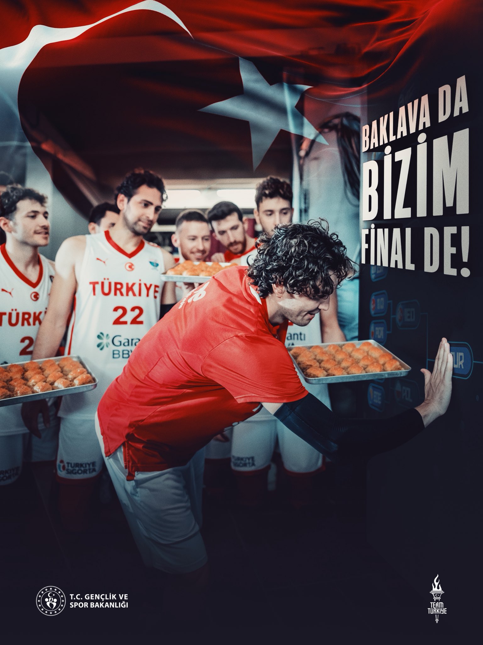 A Milli Basketbol Takımımız, EuroBasket 2025 yarı finalinde rakibi Yunanistan'ı 94-68 mağlup ederek 24 yıl aranın ardından adını Avrupa finaline yazdırdı. Gençlik ve Spor Bakanı Osman Aşkın Bak'ın NSosyal'deki, "Baklava da bizim finalde" paylaşımı ise dikkatlerden kaçmadı. İşte mücadeleden kareler...