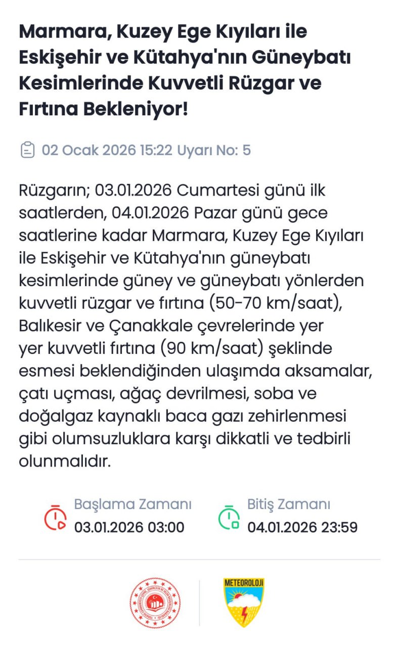 "Bu hafta artık sıcak periyoda girmiş vaziyetteyiz ve dikkat edilmesi gereken en önemli şey; Lodos'tan esen rüzgarın fırtına ile birlikte bazı şeyleri uçurabilecek şiddete erişmesi. Yani şöyle ki, yüksek binalarda çatılardan başımıza bir şeyler uçabilir, buna dikkat etmek gerekiyor. Ağaç devrilmeleri olabilir özellikle... Ve de deniz ulaşımında da büyük aksaklıklara yol açabilir. Özellikle Marmara'da bu gece ve yarın, hatta pazar günü için de deniz ulaşımında iptaller yaşanacaktır büyük olasılıkla rüzgar şiddetinden kaynaklı olarak."
