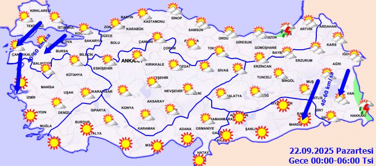 Rüzgar genellikle kuzeyli yönlerden hafif, ara sıra orta kuvvette esecek. Ancak bazı bölgelerde kuvvetli rüzgar bekleniyor: