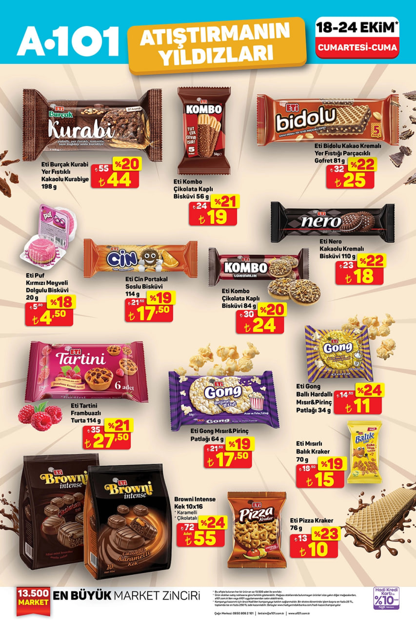 A101, 18-24 Ekim 2025 tarihleri arasında geçerli olacak yeni indirim kataloğunu duyurdu. Bu hafta sıvı deterjandan çaya, yoğurttan kırmızı ete kadar pek çok temel ihtiyaç ürünü avantajlı fiyatlarla satışta olacak. Hafta boyunca sürecek kampanya kapsamında hem mutfak hem temizlik ürünlerinde öne çıkan fırsatlar alışveriş listelerini yeniden şekillendirecek.