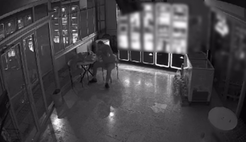 Şüpheli, dolaptan aldığı içki ve yiyecekleri masaya oturarak tüketti. Daha sonra güvenlik kamerasına zarar veren şüpheli iş yerinden ayrıldı.