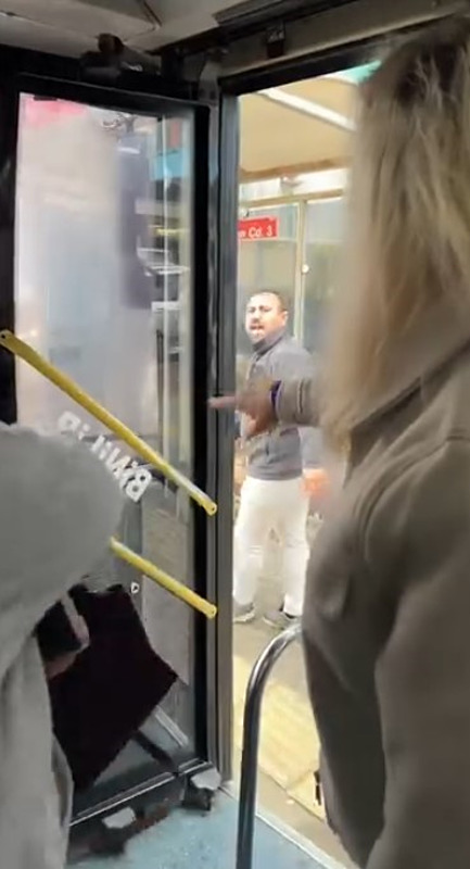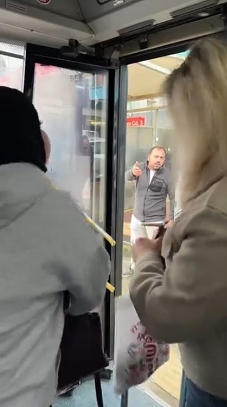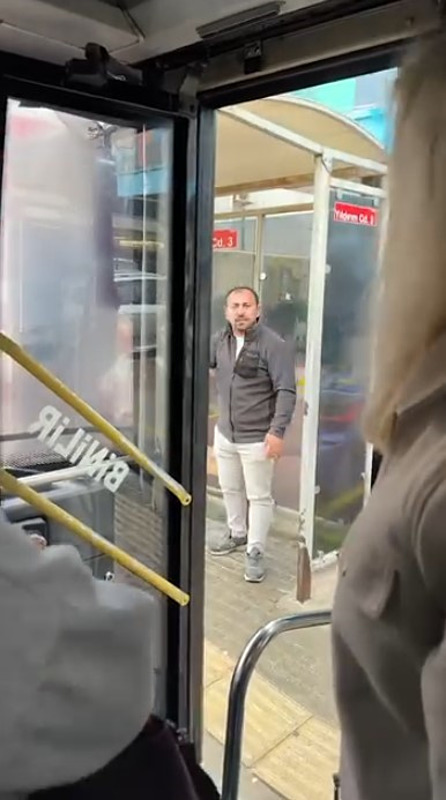 Ardından otobüsten inen şoför yolculara aldırış etmeden sigara içti. Bu sırada işe geç kalan yolculardan biri duruma tepki gösterdi.