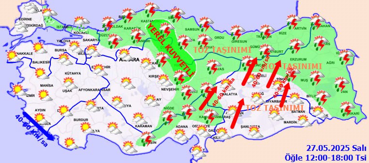 Meteoroloji Genel Müdürlüğü'nün son değerlendirmelerine göre, yurt genelinde parçalı ve çok bulutlu bir hava hakim. Bazı bölgelerde sağanak ve gök gürültülü sağanak yağış beklenirken, toz taşınımı etkisini artırıyor. Güney kıyılarla birlikte iç kesimlerde sıcaklık değişimleri ve kuvvetli rüzgarlar dikkat çekiyor.