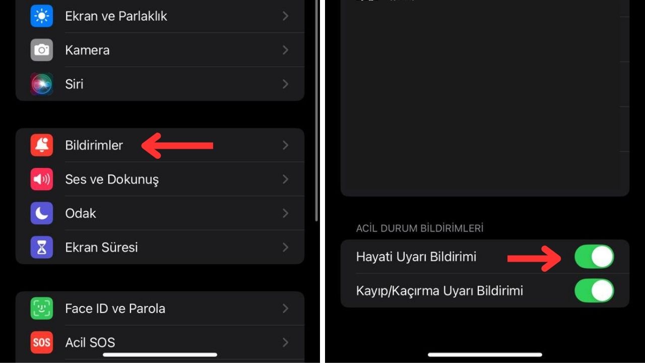 Bu ayarların ardından telefon, deprem gibi acil durumlarda anında bildirim göndermeye başlıyor.