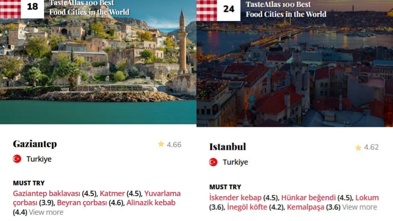 Türkiye'nin mutfak kültürü, uluslararası gastronomi haritasında kendine sağlam bir yer edindi. Dünya mutfaklarının nabzını tutan TasteAtlas'ın hazırladığı ve 17 binden fazla şehrin değerlendirildiği sıralamada Türkiye'den iki şehir en iyi yemek şehirleri listesine girdi.