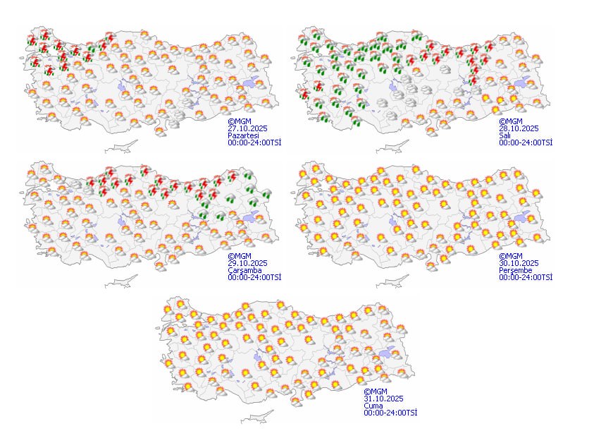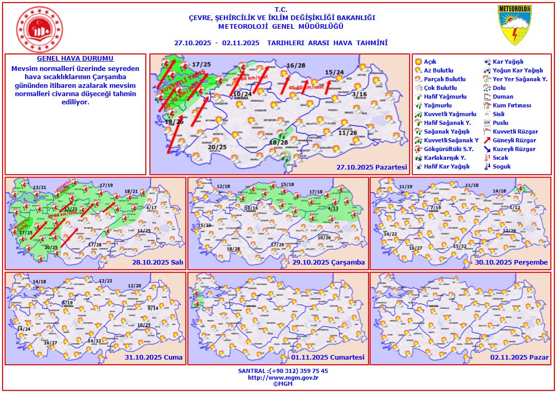 Prof. Dr. Orhan Şen, pazartesi günü Marmara başta olmak üzere batı kesimlerde yağışların yeniden etkisini göstereceğini belirterek, çarşamba günü sıcaklık düşüşüyle birlikte yağışların kuvvetleneceğini söyledi. Şen, "Önümüzdeki hafta pazartesi ve salı günleri yağışlı geçecek. Çarşambadan itibaren sıcaklıkların düşmesiyle yağışlar kuvvetlenecek. İstanbul'da sıcaklık pazartesi günü 24-25 derece civarında olacak, ancak çarşamba gününden itibaren gelen yeni sistemle 6-7 derece birden düşecek" dedi.