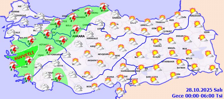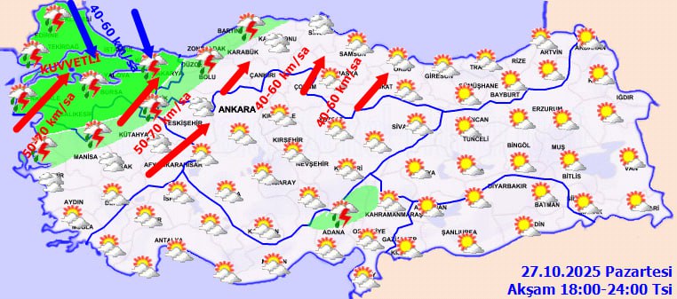 Meteoroloji'nin değerlendirmesine göre, Türkiye'nin batı kesimleri yeni bir yağışlı sistemin etkisine giriyor. Gün boyunca Marmara ve Ege'de aralıklarla sürecek yağışların, öğleden sonra kuvvetleneceği, akşam saatlerinde ise özellikle İstanbul, Kocaeli, Balıkesir, Bursa, İzmir ve Manisa çevrelerinde yerel olarak etkili olacağı öngörülüyor.