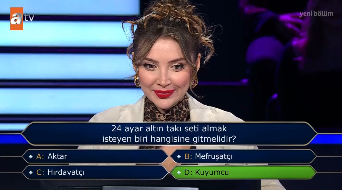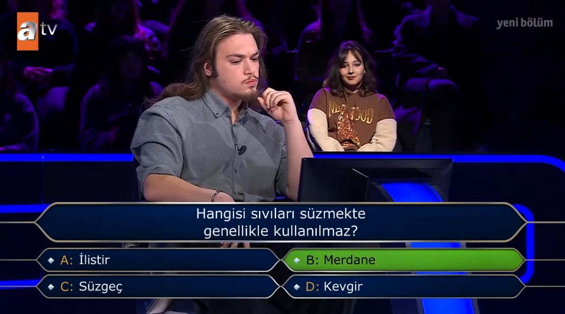 Haliç Universitesi Görsel İletişim Tasarımı okuyan Aslan Galatasaray ve UEFA Süper Kupası sorusunda heyecan dolu anlar yaşadı. Soru üstünde düşünen yarışmacı telefon joker hakkını kullanmaya karar verdi.