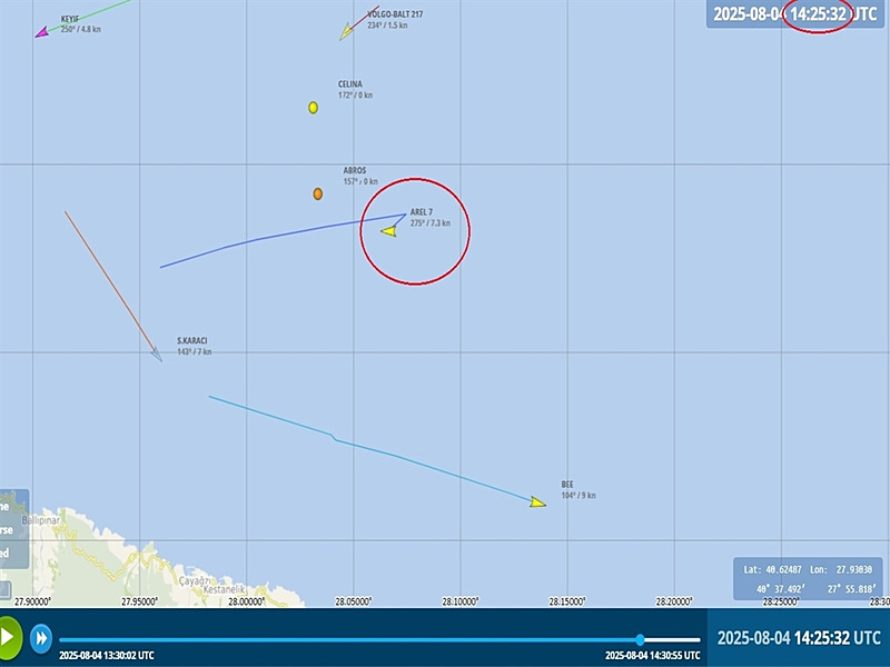 Halit Yukay'ın teknesine çarptığı değerlendirilen 'Arel 7' isimli kuru yük gemisinin İzmit Limanı'na geldiği anların görüntüsü de ortaya çıktı. Güvenlik kamerası görüntülerinde; 5 Ağustos'ta saat 04.00 sıralarında limana yanaşan 'Arel 7'nin kaptanı Cemal Tokatlıoğlu ile yanındaki mürettebatın saat 04.17'de gemiden inip, baş kısmına gelerek gemiye baktığı, ardından iskele baş tarafta durup tekrar gemiye baktığı görüldü. Önünde belirgin sürtme izleri olduğu saptanan geminin fotoğrafları ile birlikte bu görüntüler de soruşturma dosyasına girdi.