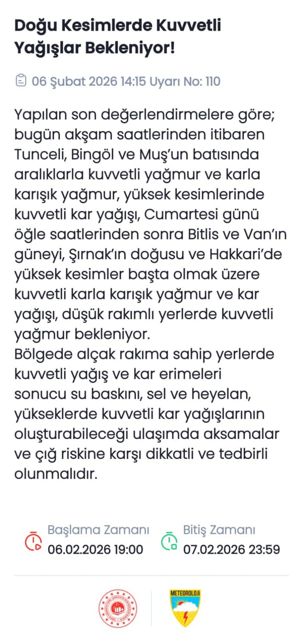 Yağışlar doğuya ilerledikçe tür değiştiriyor. Adil Tek açıklamasında, Sivas ve çevresinden itibaren yüksek kesimlerde karla karışık yağmur ve kar görüldüğünü belirtti. "Diyarbakır'dan yukarı kuzey kesimlerde kar şeklinde dönmeye başlayacak. Ama ardından bugün yine yağış, yeni yağış geliyor." dedi.