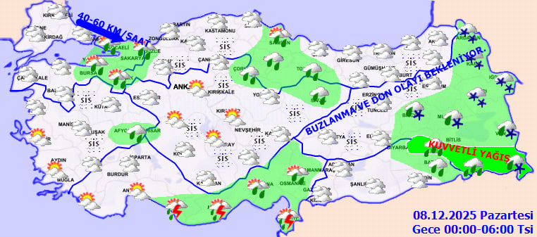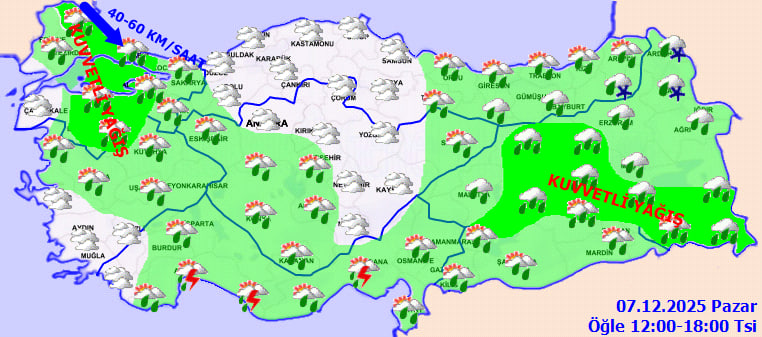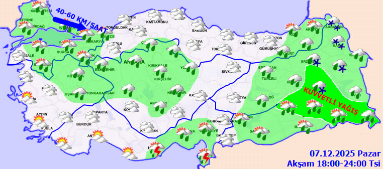 Yağışların; kıyı kesimlerde sağanak ve gök gürültülü sağanak, yüksek kesimlerde ise karla karışık yağmur ve kar şeklinde etkili olacağı tahmin ediliyor. Özellikle Doğu Anadolu'nun güney ve batısı, Güneydoğu Anadolu'nun kuzeyi ile Kırklareli, İstanbul, Bursa, Balıkesir, Yalova, Antalya'nın doğu kıyıları ve Erzurum'un güneyinde yağışların kuvvetli olacağı duyuruldu. Hakkari ve Şırnak çevrelerinde ise yağışın yer yer çok kuvvetli seviyeye ulaşabileceği uyarısı yapıldı.