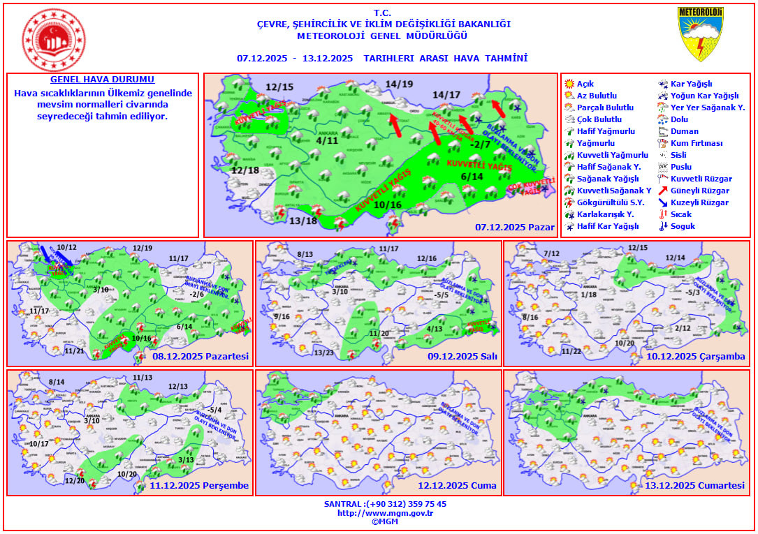 Meteoroloji Genel Müdürlüğü'nün son tahminlerine göre Türkiye, hafta sonu itibarıyla yeni bir yağışlı ve soğuk hava sisteminin etkisi altına giriyor. Ülke genelinde çok bulutlu hava hakim olurken, Güney Ege ile Çanakkale, İzmir, Zonguldak, Bolu ve Karabük çevreleri dışında kalan tüm bölgelerde aralıklı yağış bekleniyor.