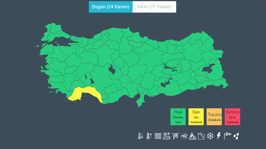 Antalya için sarı kodlu uyarı verilirken, bölgedeki yağışların anlık olarak şiddetlenebileceği ifade ediliyor. Uzmanlar, ani su baskınlarına karşı tedbirli olunmasını vurguluyor.