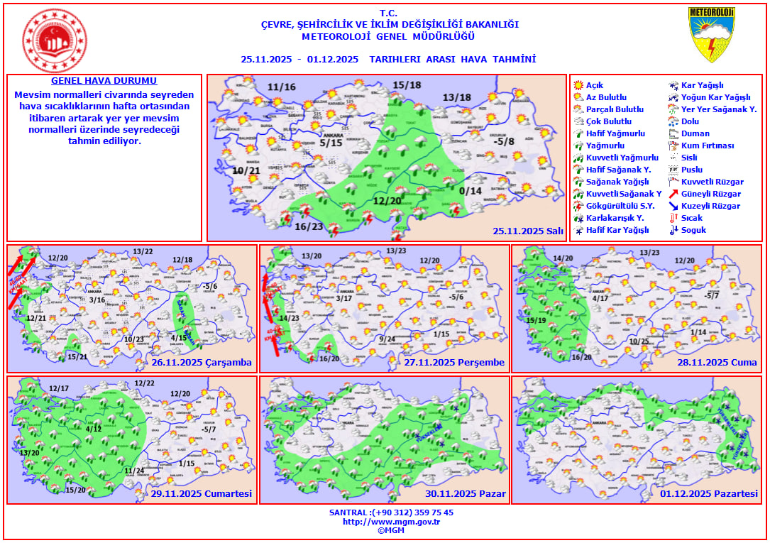 Meteoroloji Genel Müdürlüğü'nün son raporu, yurdun geniş bir bölümünde yağışların etkisini sürdüreceğini ortaya koyarken sıcaklıkların hafta ortasından sonra yeniden yükseleceğine işaret ediyor.