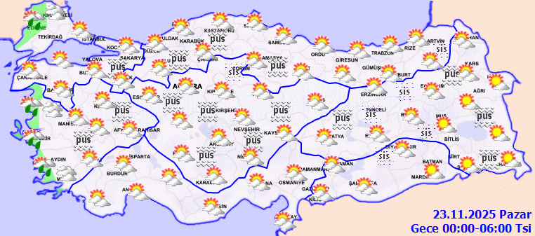 Marmara'nın doğusu ile iç ve doğu bölgelerinde sabah ve gece saatlerinde pus ve yer yer sis bekleniyor. Görüş mesafesinde düşüş yaşanması nedeniyle sürücülerin dikkatli olması öneriliyor.