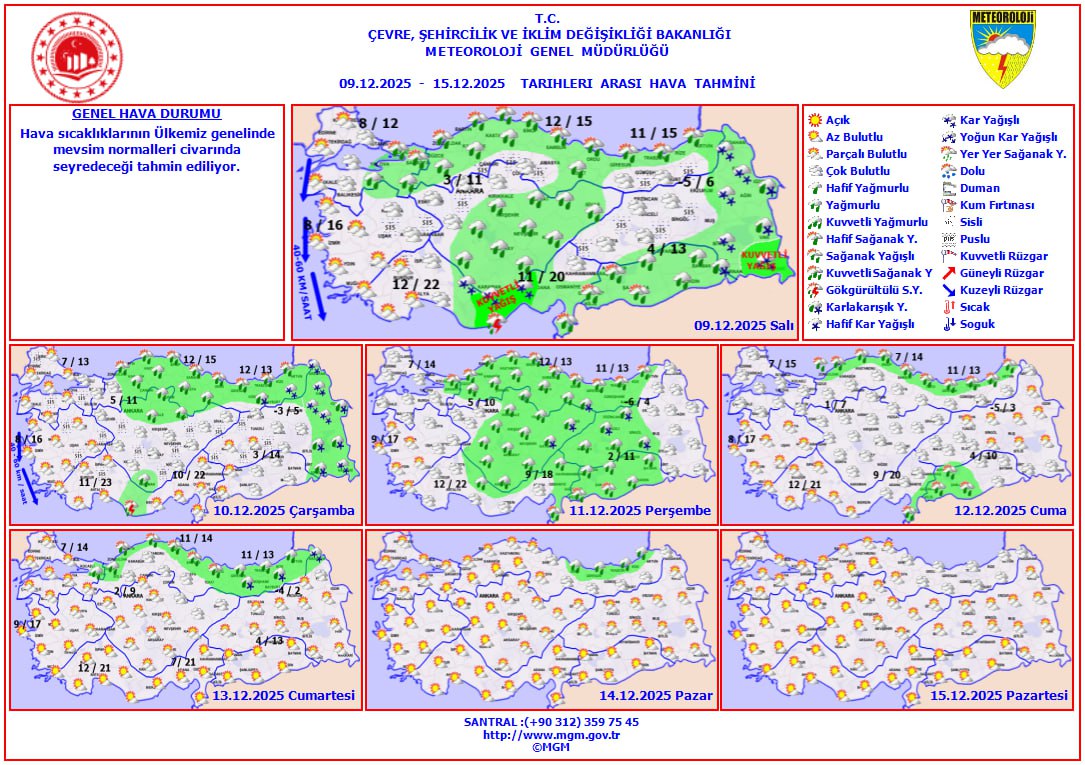 Meteoroloji Genel Müdürlüğü Analiz ve Tahminler Şube Müdürü Şahin Şahbaz, Türkiye'nin bu hafta soğuk ve yağışlı bir havanın etkisinde olduğunu belirterek yağışların ağırlıklı olarak kuzey ve doğu bölgelerde birkaç gün daha süreceğini ifade etti. Buna karşın, cuma gününden sonra birçok bölgede yağışın sona ereceğini, sadece kuzey kesimlerde devam edeceğini söyledi.