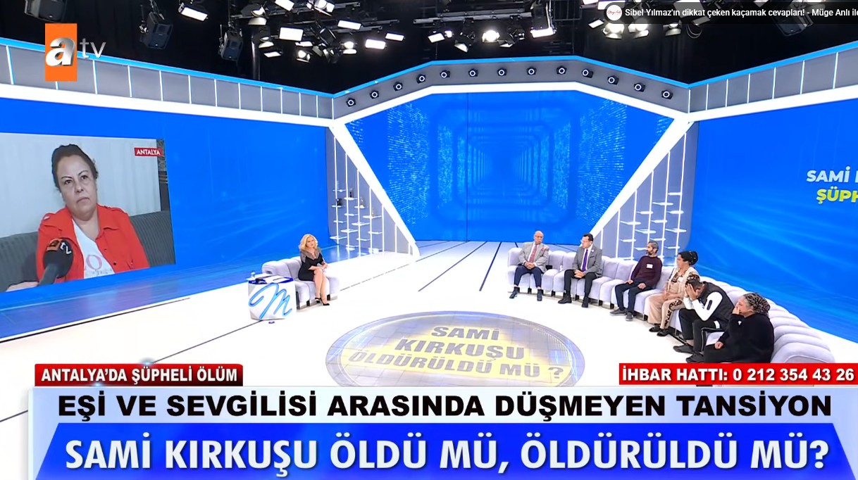 Antalya'da falezlerde ölü bulunan Sami Kırkuşu'nun şüpheli ölümünde sır perdesi aralanıyor. Müge Anlı'nın yönelttiği sorular karşısında net cevaplar veremeyen şüpheli sevgilisi Sibel Yılmaz, izleyicilerin de tepkisini çekti. Tansiyonun bir an olsun düşmediği programda, eşinin acıyla sarsılan Cemile Kırkuşu'nun feryadı yürekleri dağladı.